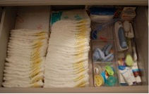 Portanto, aquela montanha de fraldas descartáveis, lenços umedecidos, shampoos e sabonetes que você ganhou no Chá de Bebê (Ainda bem!!!) podem ser guardados fora do quarto ou do banheiro do bebê, caso não tenha espaço.